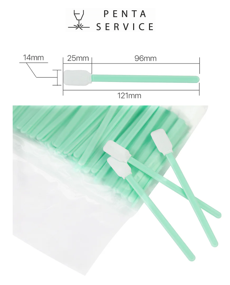 Для очистки оптики важно использовать безворсовые чистящие палочки (свабы). Палочки применяют для точечного удаления инородных частиц с поверхности оптической детали. Они не оставляют микроскопических частиц ворса, которые могут пригореть к линзе так же, как и пыль, поэтому их использование исключает риск повреждения деталей. Они имеют нежную текстуру, идеально подходящую для очистки поверхностей оптических элементов. Палочки удобно использовать в сочетании с изопропиловым спиртом, который удаляет с поверхностей отпечатки пальцев, жировой налет и другие загрязнения.